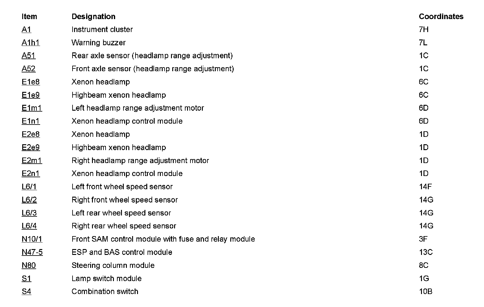 Component Description/Coordinates, A1 To S4: