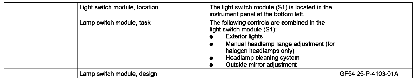 GF54.25-P-4103A Lamp Switch Module, Location/task/design