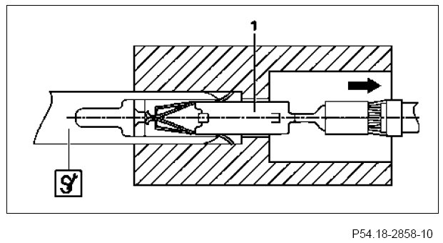 3 Remove the female contact (1) in the direction of arrow from the interior fuse box (F34) by carefully pulling on the corresponding cable.