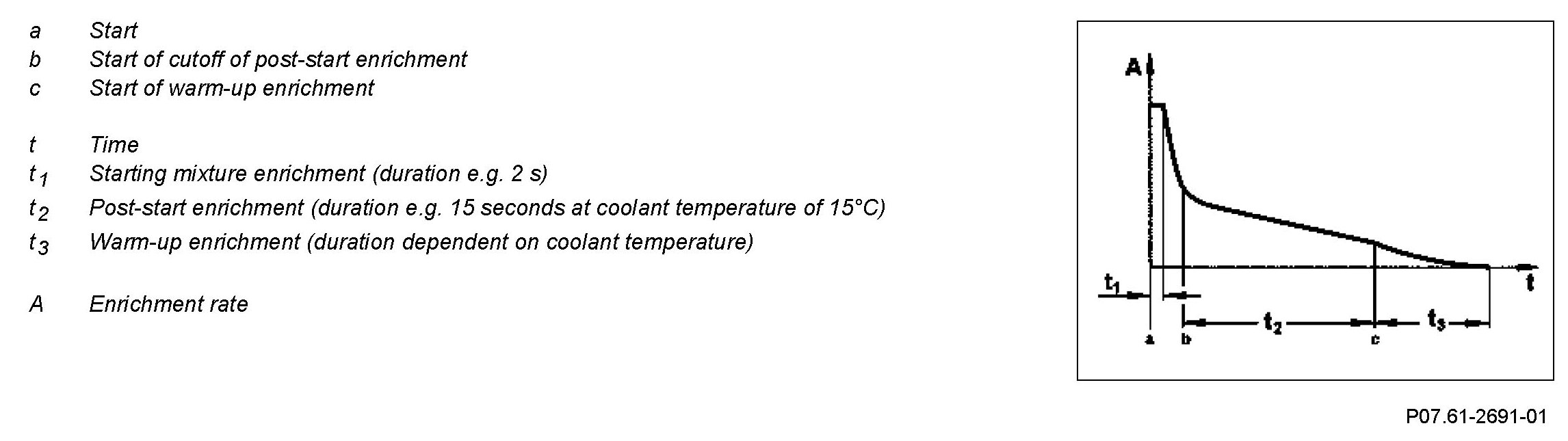 After a cold start the fuel-air mixture is enriched for a short time to ensure that the engine runs smoothly.