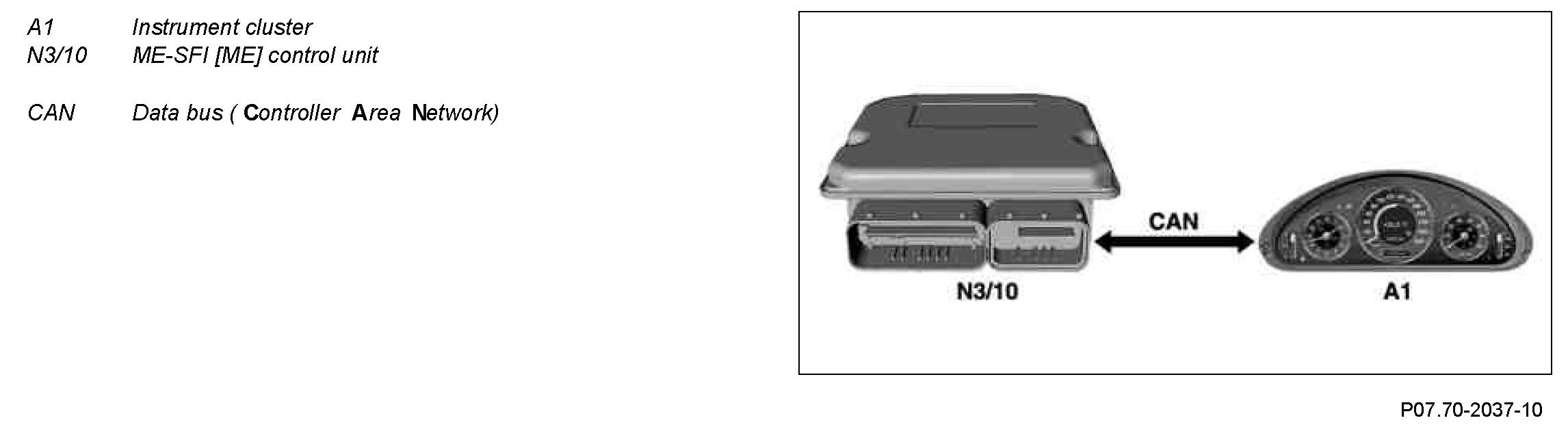 The current fuel consumption is transmitted to the trip computer in the instrument cluster via the CAN Data bus by the ME-SFI [ME] control unit in the form of square-wave pulse packages.