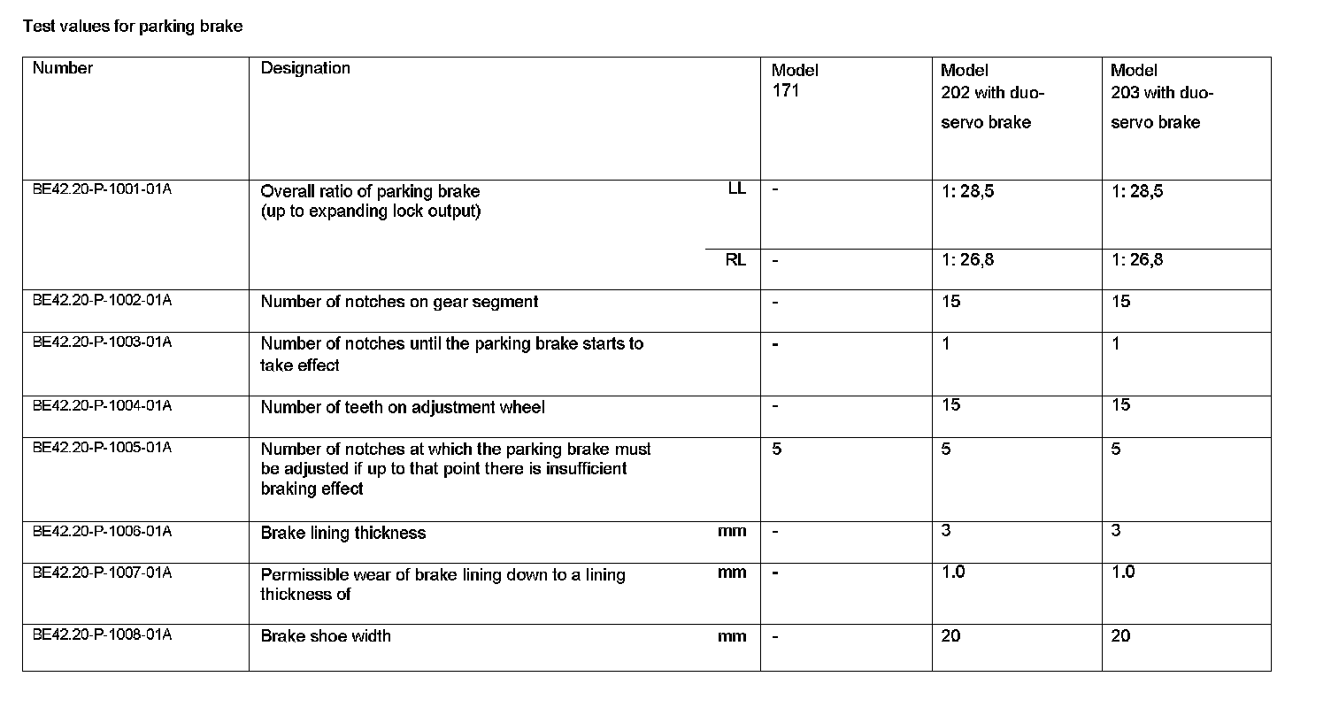 BE42.20-P-1000-01A Test Values For Parking Brake
