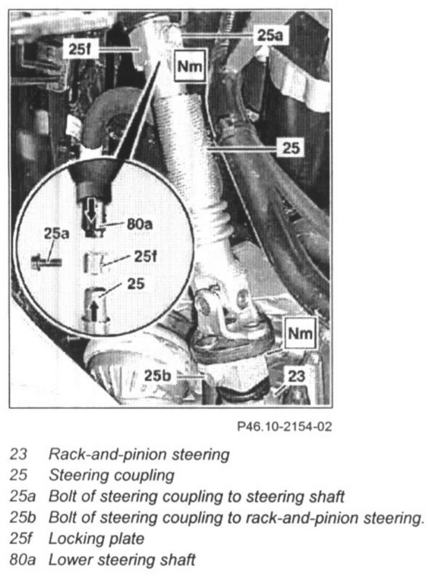 8 Unscrew nut with bolt steering coupling to rack-and-pinion steering (25b)