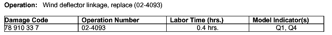 This Service Campaign has been initiated because DCAG has determined that on the affected vehicles (see VIN range below) the wind deflector linkage may not perform properly on rough roads in high temperatures. Dealers will replace the wind deflector linkage with an updated part.