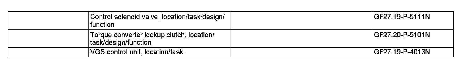 The torque converter lock-up clutch control pressure is adapted to the respective operating condition via the torque converter lockup clutch control solenoid valve (VGS) (Y8/8y8) which is actuated by the fully integrated transmission control (VGS) control unit (Y3/8n4).