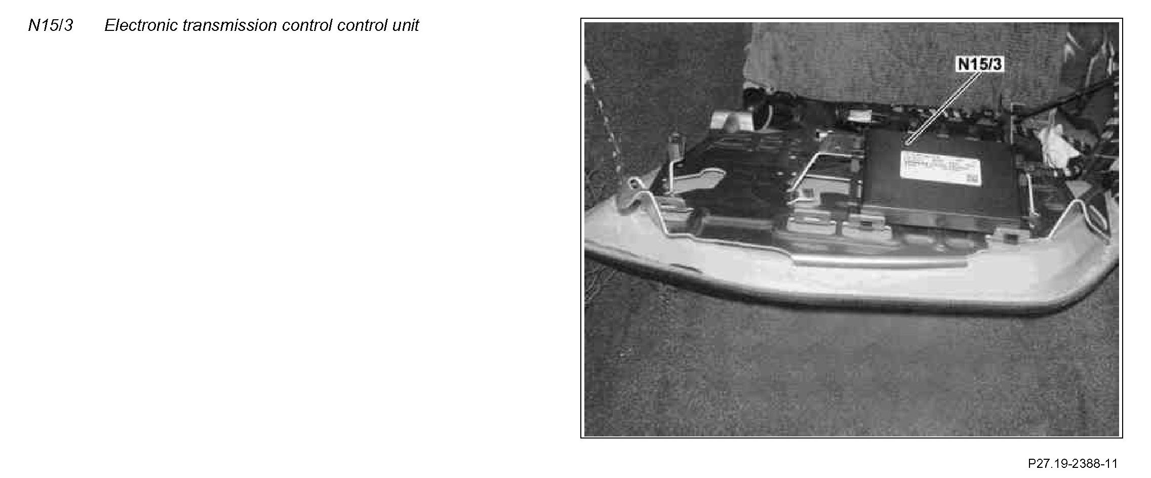 The electronic transmission control control unit is located in the front of the front passenger footwell.