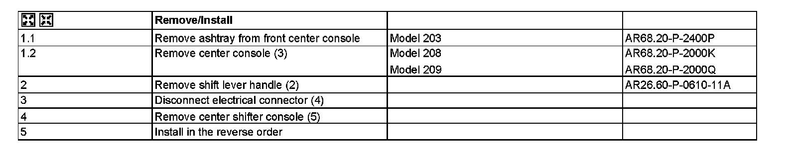 AR26.60-P-0600E Removing and installing floor shift