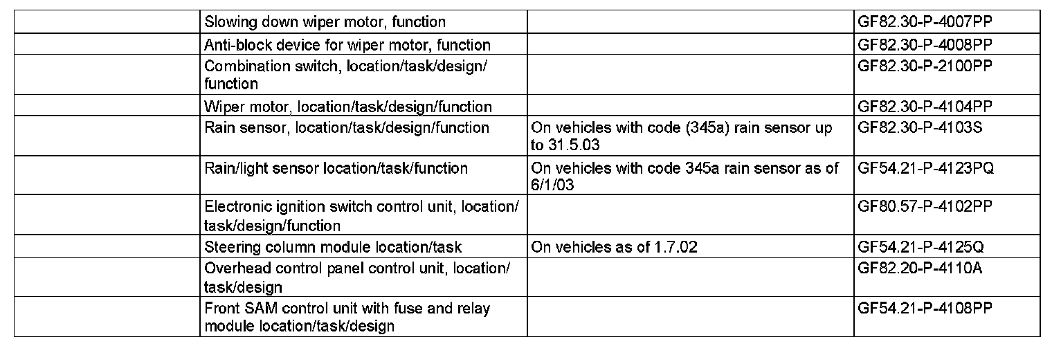 Shown on rain sensor (B38) up to 31.5.03