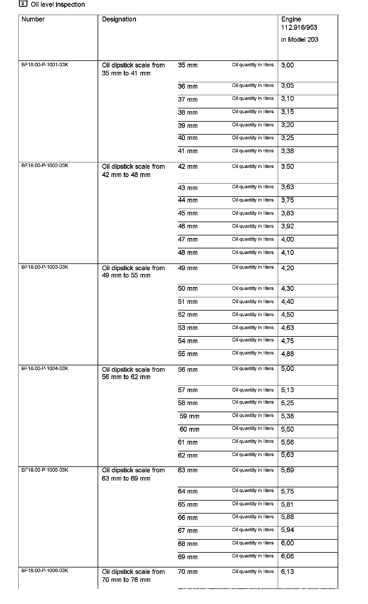 3. Read off oil level value at dipstick (3) and convert by means of chart.