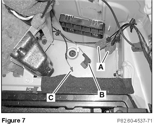 1. In the exposed right side trunk well, find the:^ SDAR antenna leads (A, Figure 7)