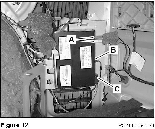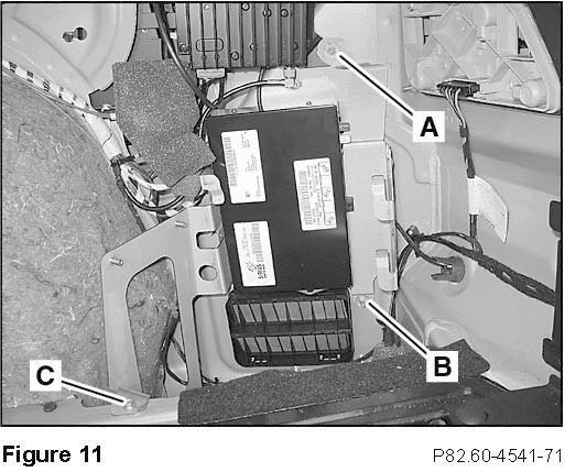 5. Mount the SDAR control module/bracket assembly to the right side well of the trunk:
