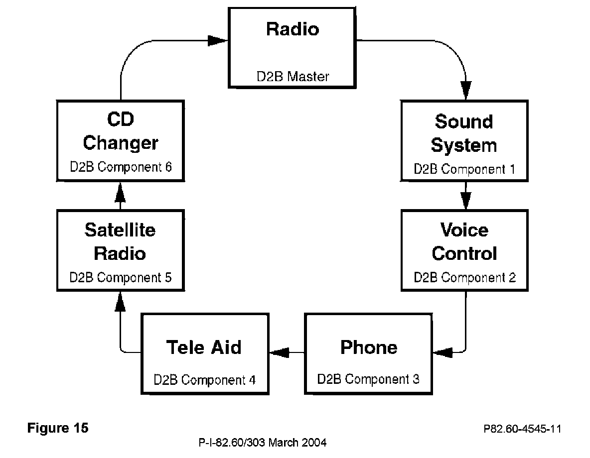The D2B ring configuration in Figure 15 is an example of a configuration including every component. Some installations will not include all the components shown in the example. If a component is not present, connect the preceding component to the component following the one not present.