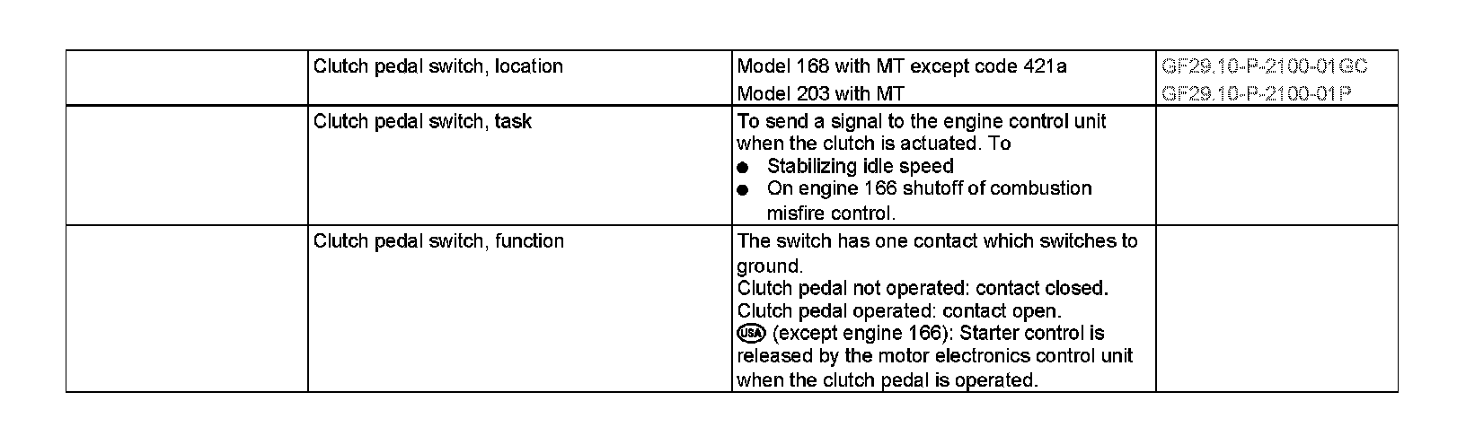 GF29.10-P-2100F Clutch pedal switch, location/task/function