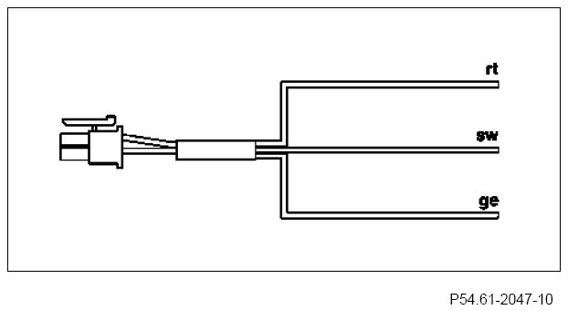 3 Connect the red/white line (rt/ws) from the cigarette lighter to the yellow line (ge) from the wiring harness for the electronic vehicle log by means of terminal connector.
