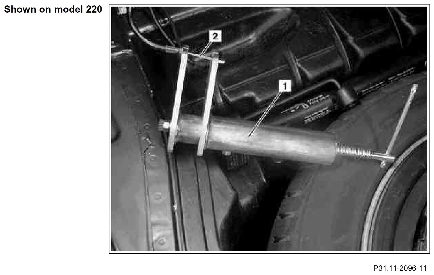 If the cable (2) is defective (cracked) (2) a new trailer hitch crossmember must be installed. The cable (2) cannot be replaced individually.