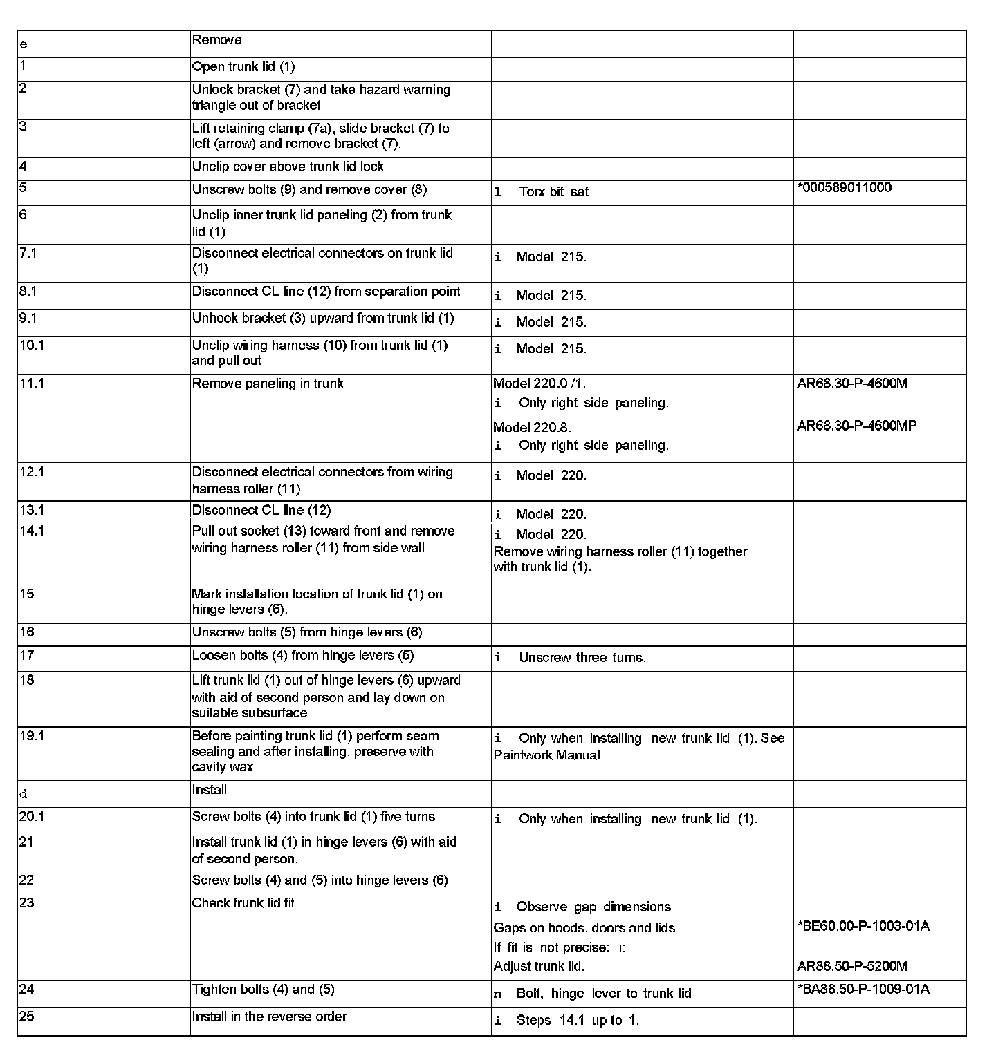 AR88.50-P-5000M Remove/Install Trunk LidComponent Identification: