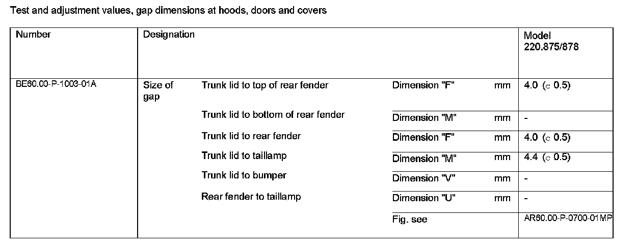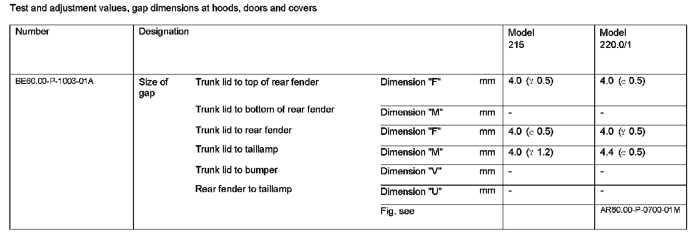 Test And Adjustment Values, Gap Dimensions At Hoods, Doors And Covers: