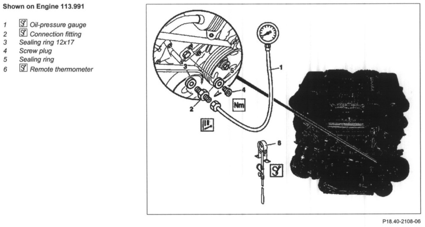 6 Start engine, measure oil pressure