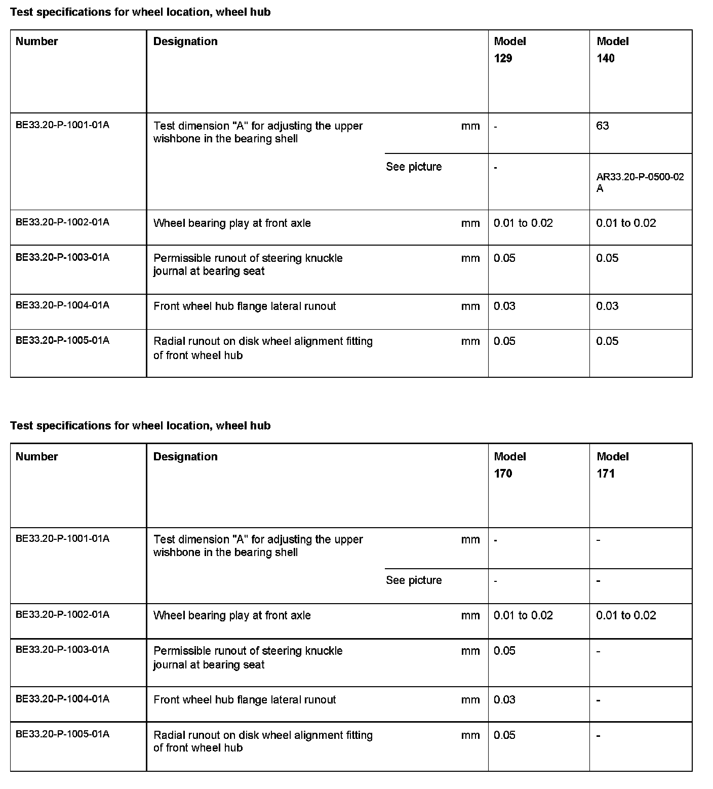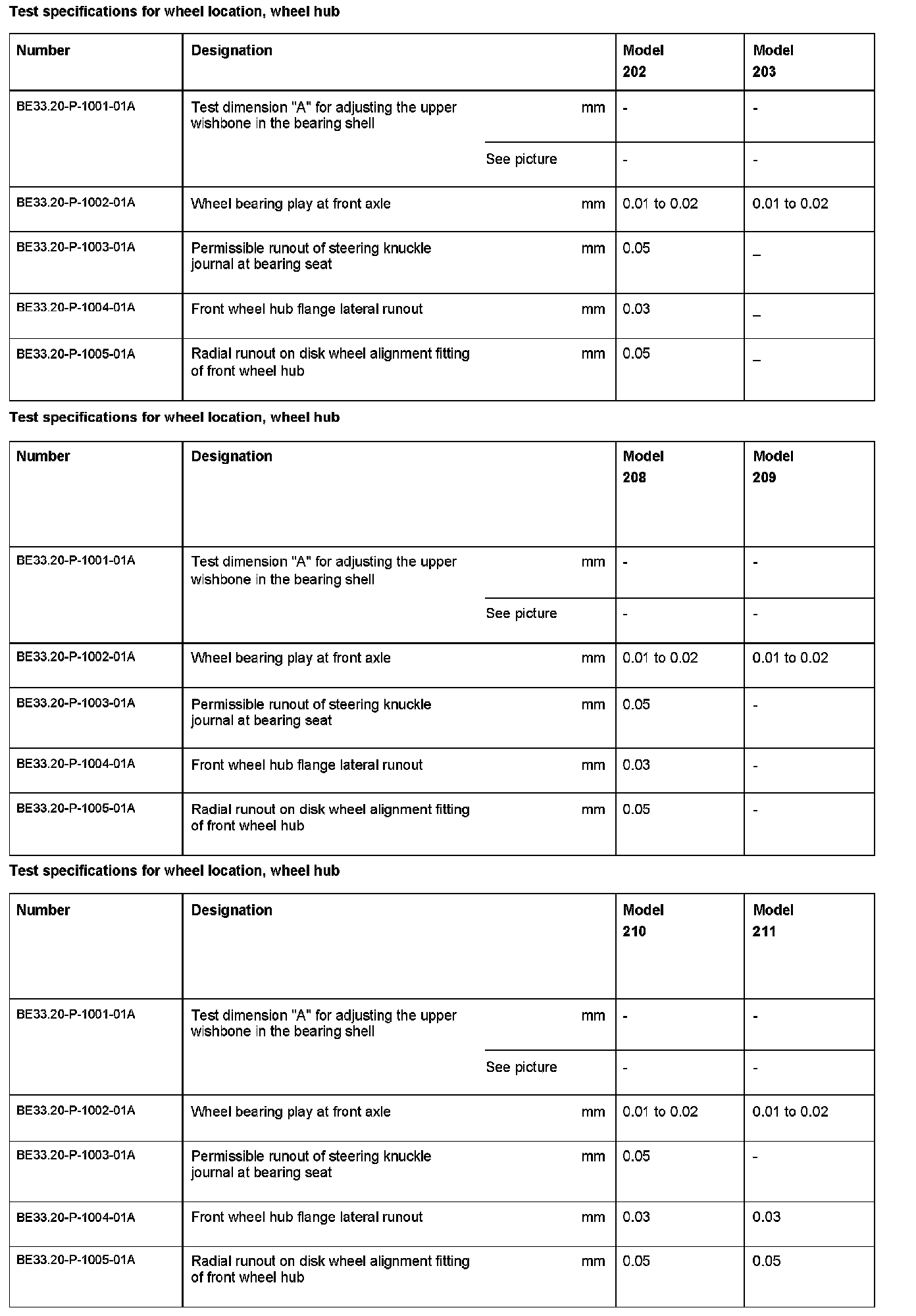 BE33.20-P-1000-01A Test specifications for wheel location, wheel hubModification Notes:
