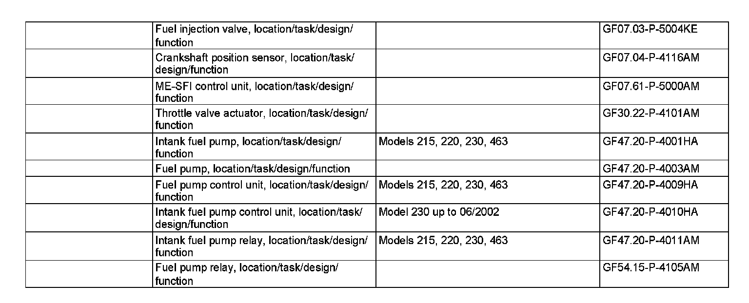 On model 230 up to 06/2002 the intank fuel pump (N118/1) was not directly actuated by the ME control unit but via the intank fuel pump control unit.
