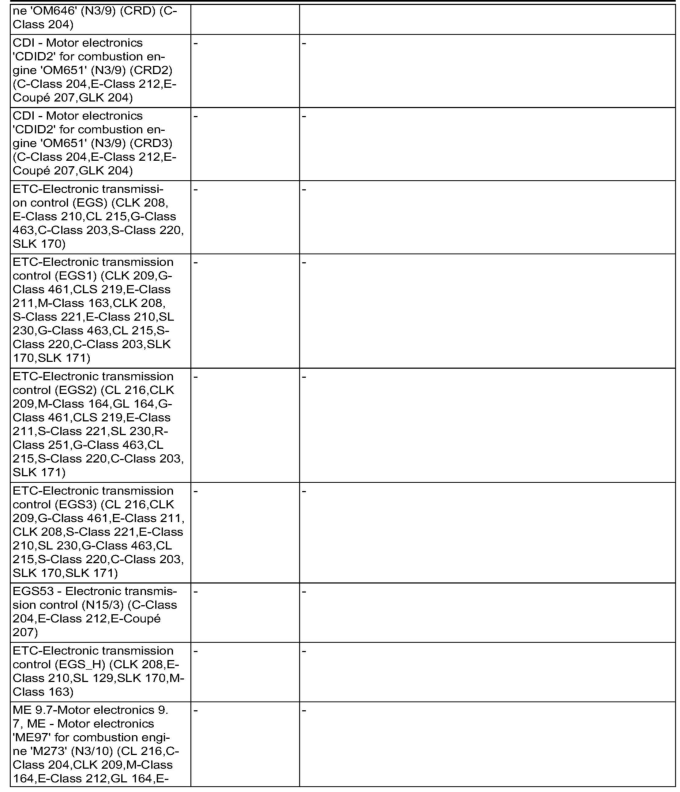 Model series: 171, 203, 209, 211, 219, 221, 216, 230, 164, 251, 463
