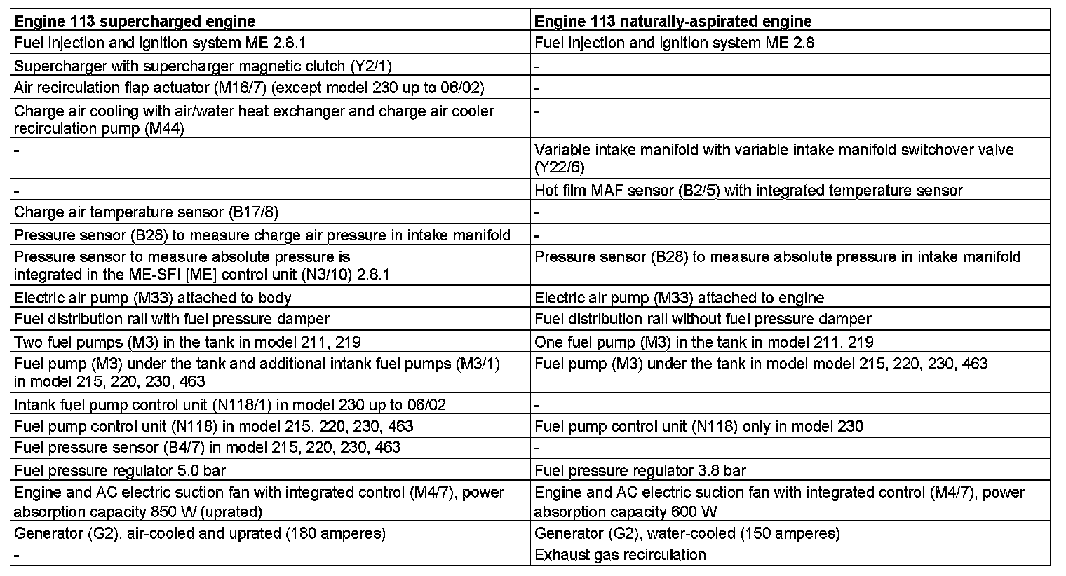 Differences between: Engine 113 supercharged engine and engine 113 naturally aspirated engine