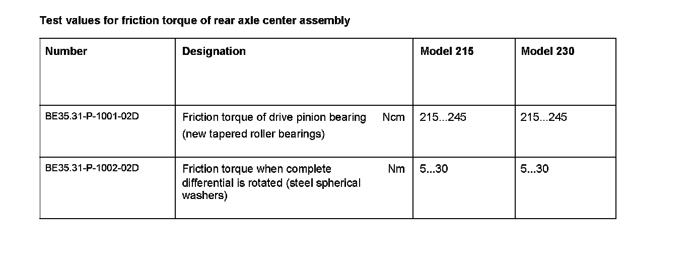 BE35.31-P-1000-02D Test values for friction torque of rear axle center assembly
