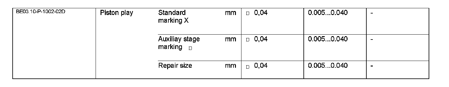 BE03.10-P-1000-02D Test Values For Pistons