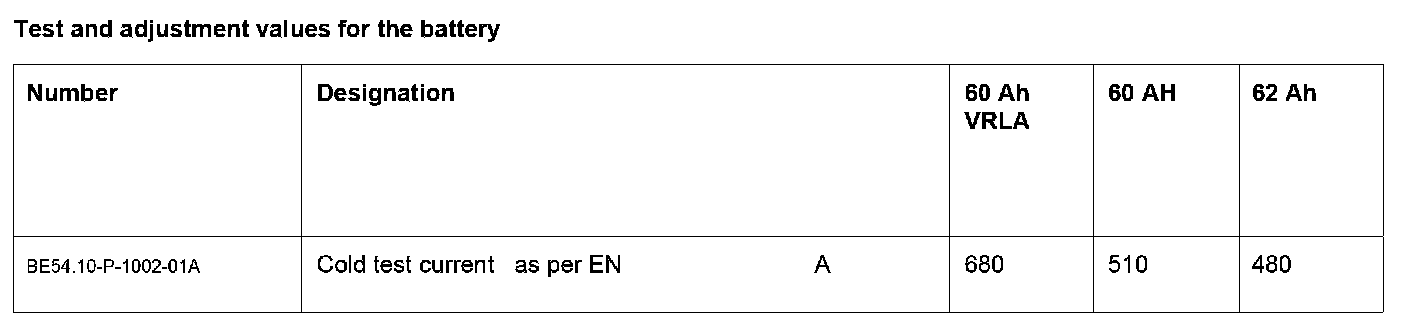 ^ Battery removed: reduce increased voltage using a suitable volt/amp(s) tester (load battery for approx. 60 s with 20 A to 30 A amps).