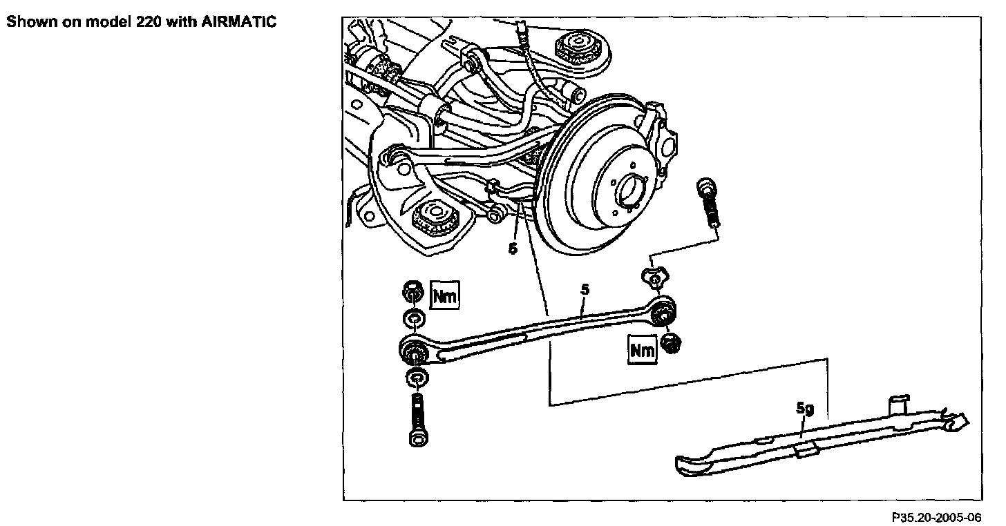 3 Remove thrust arm (5) from wheel carrier and rear axle carrier