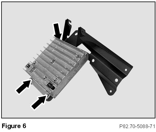 9. Loosely secure the bracket lower leg to the reinforcement rib with an M6 x 18 sheet metal screw into the Tinnermann clip (B, Figure 8).