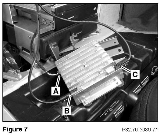 1. Install the Tinnermann clip over the hole in the trunk reinforcement rib (A, Figure 5).