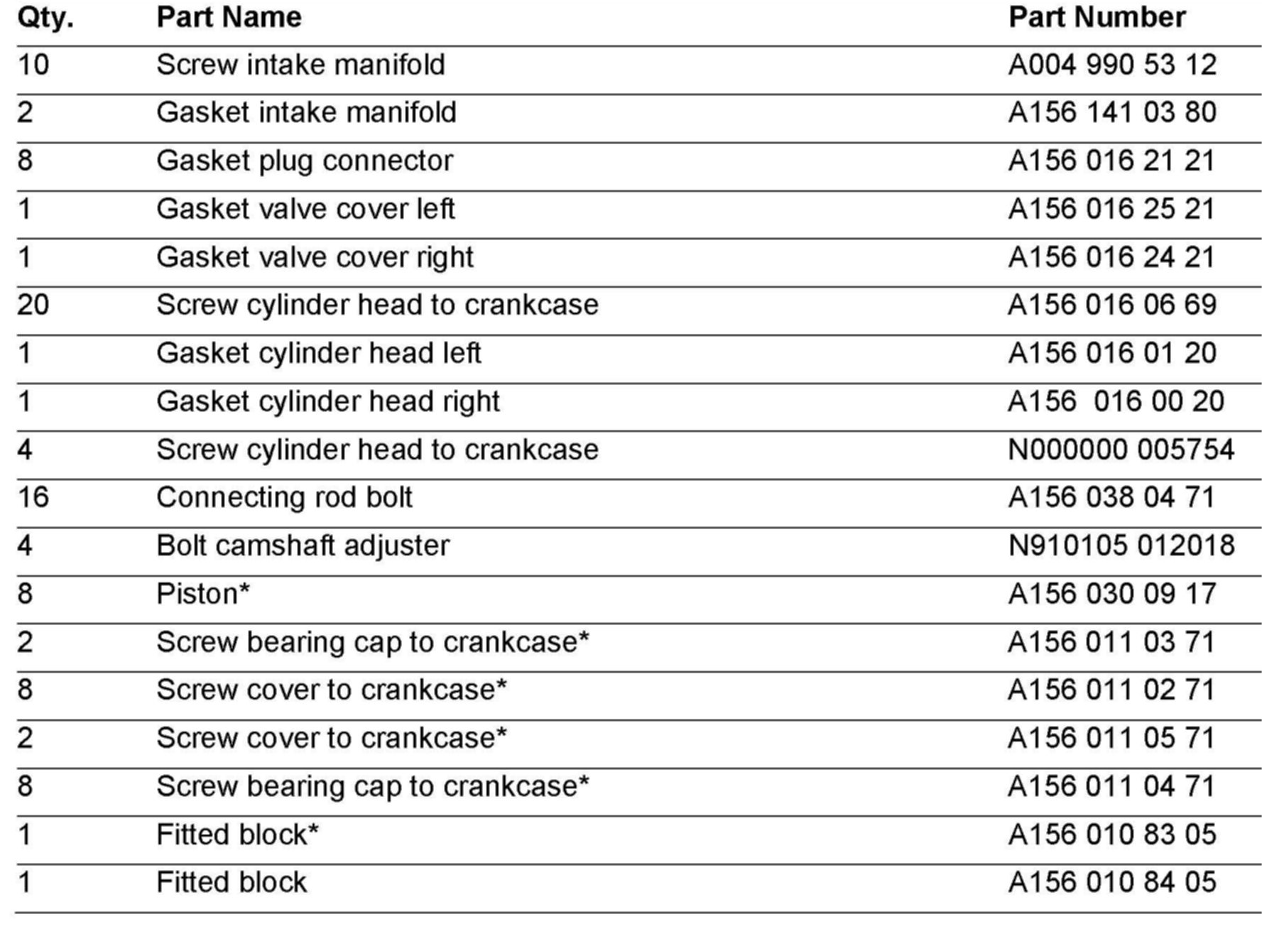 Additional Parts Information for Engine 156.xxx