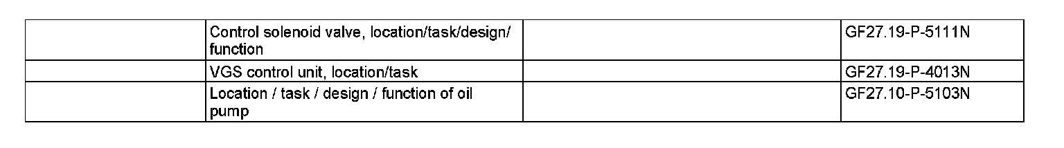 The oil pressure produced by the oil pump is converted into working pressure by the working pressure regulating valve. The level of operating pressure depends on the position of the regulating valve and thus on its geometry. The position of the working pressure regulating valve is influenced by the working pressure control solenoid valve (VGS) (Y3/8y1) in a load/gear dependent manner. All other pressures required for the transmission control are derived from the working pressure.