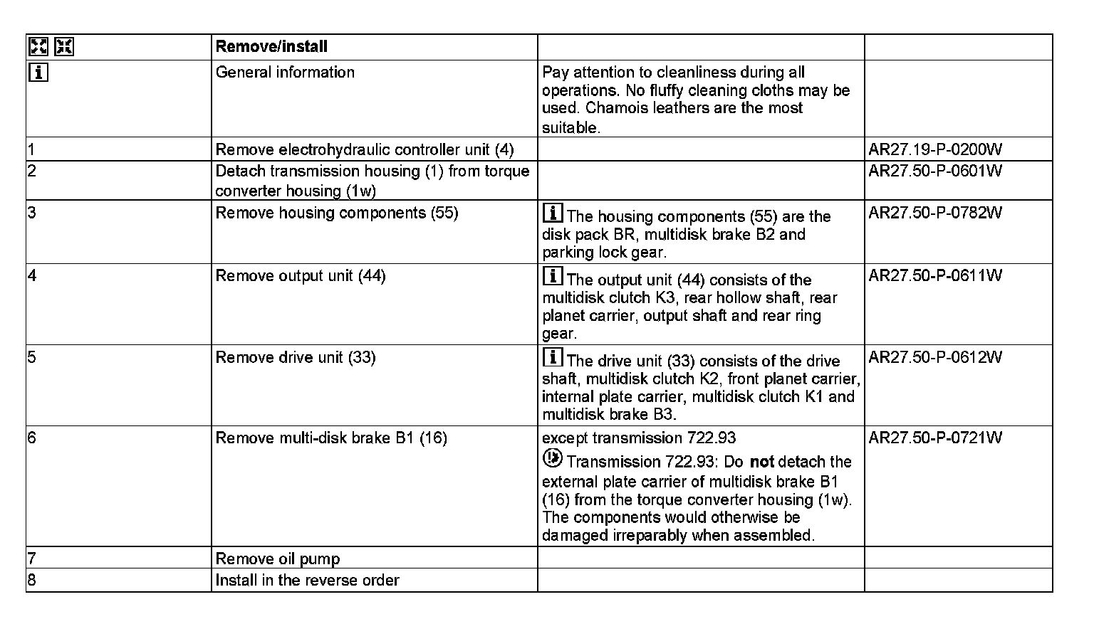 AR27.50-P-0610W Remove/Install Main Components of Transmission