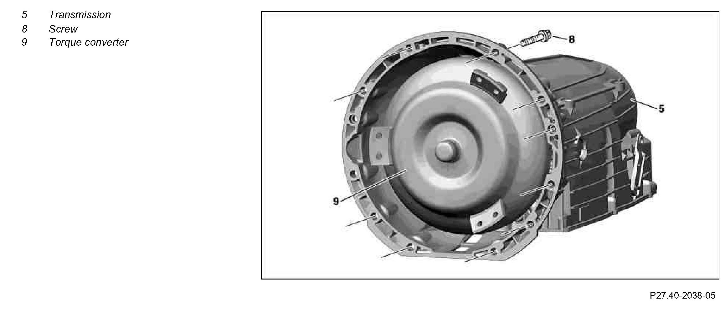 AR27.10-P-0500EV Remove/install transmission with torque converter