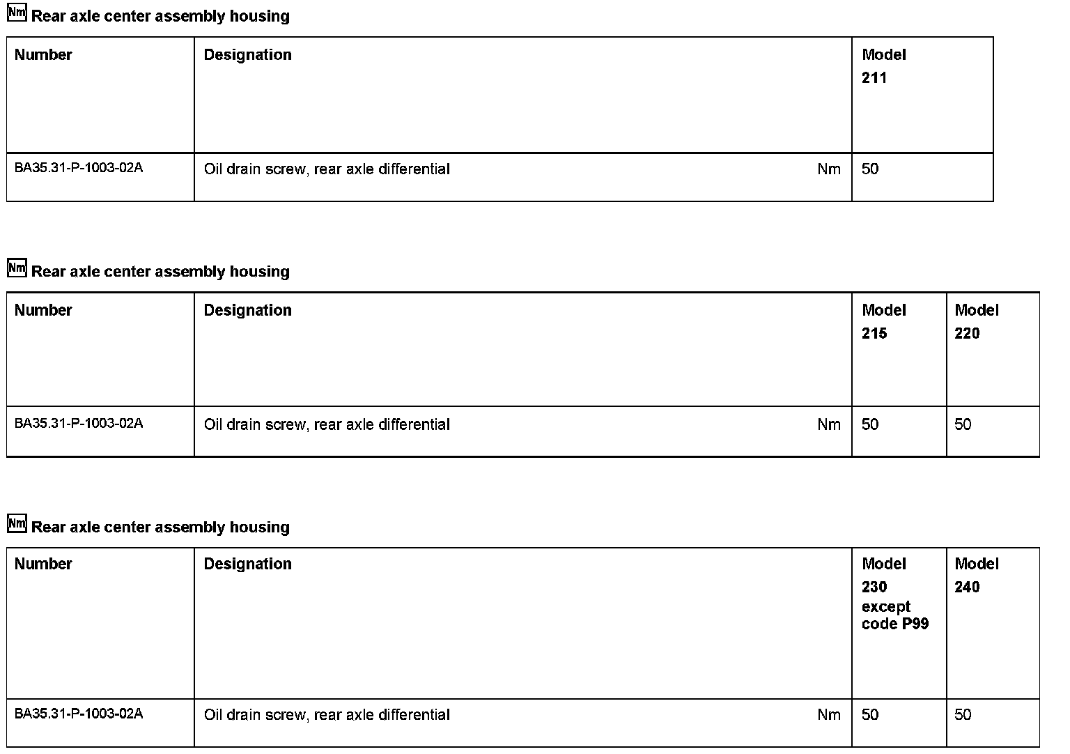 5 Screw oil drain screw (50h) immediately into the rear axle differential and tighten with specified torque.