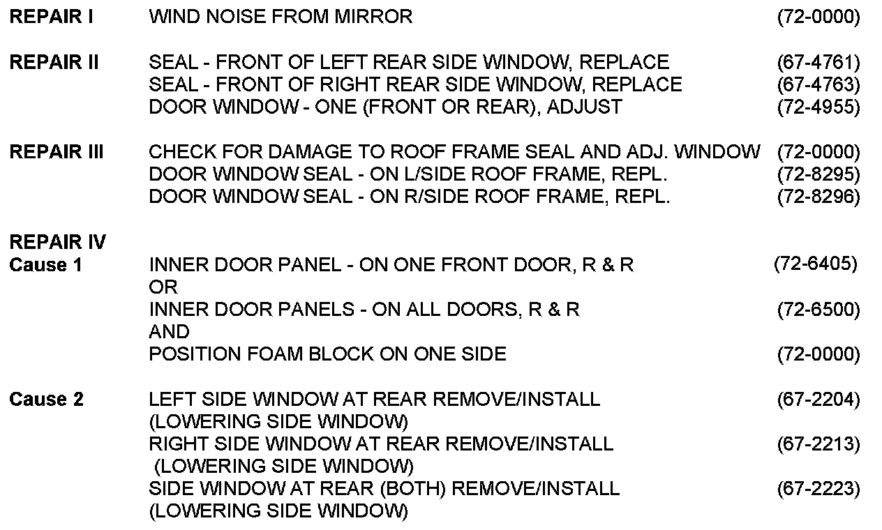 Body - Wind Noise Diagnostics/Repair