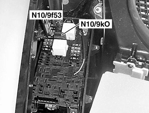- Unplug component N10/9kO (Charge air cooler recirculation pump relay) from component N10/9 (SAM control module with fuse and relay module, front passenger).