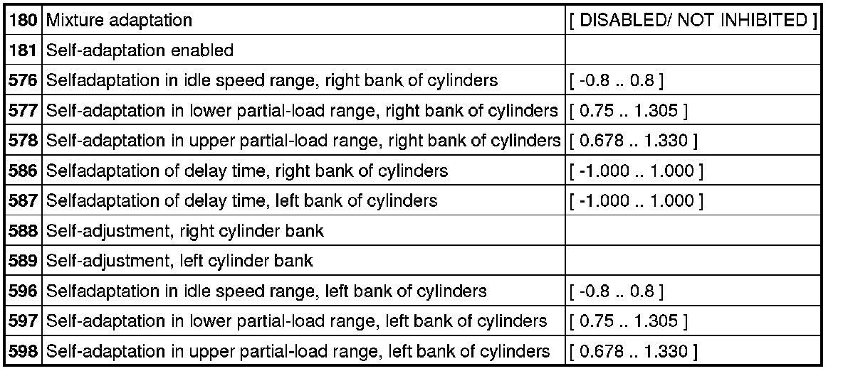 Self-adaptation of mixture formation for right bank of cylinders is at limit value (at idle speed).