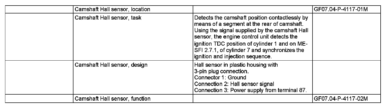 GF07.04-P-4117M Camshaft Hall Sensor, Location/Task/Design/Function