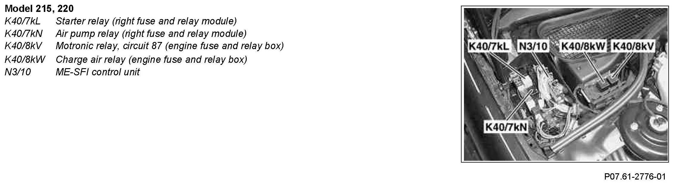 Model 215, 220 from right front fuse and relay module (K40/7)