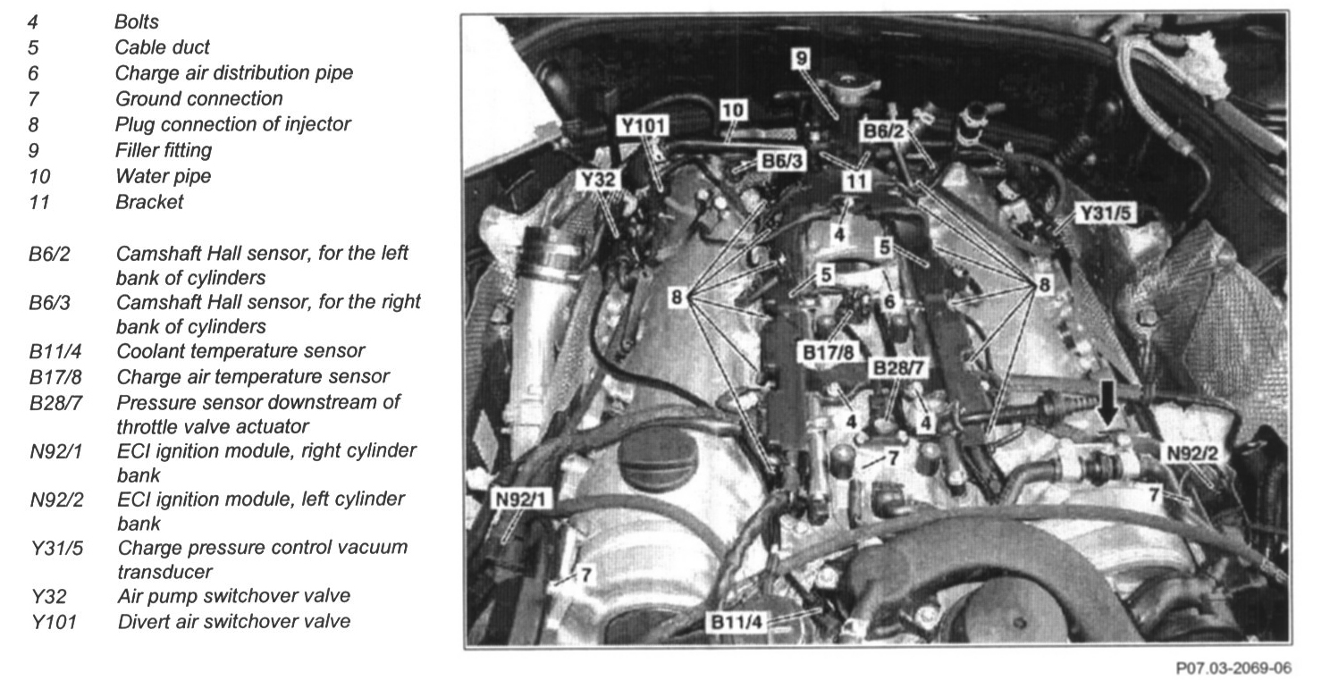 17 Unplug the electrical plug connection from the charge air regulation pressure transducer (Y31/5) on the cylinder head
