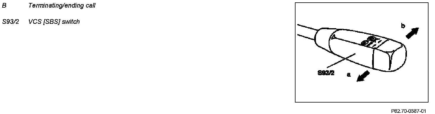 If during a telephone call the VCS switch (S93/2) is operated in the direction away from the driver then as a result the voice recognition of the voice control system (VCS) is deactivated and the existing connection is disconnected. Voice recognition is integrated in the voice control system control unit (A35/11). The telephone call can be deactivated at any time. If the user is in input mode, then using the hands-free system microphone (B25) he can deactivate voice recognition and thus the VCS with the voice command "Abort". Deactivation is likewise possible at any point of the input mode.
