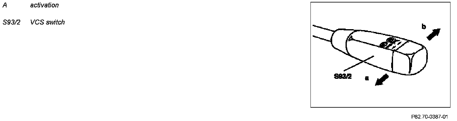The voice control system (VCS) is activated by pulling the VCS [SBS] switch (S93/2) towards the driver.