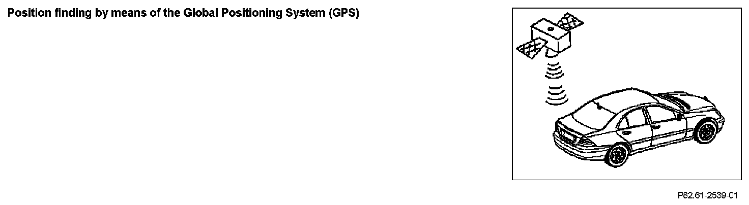 The navigation processor in the COMAND operating, display and control unit (A40/3) calculates the vehicle location and the exact position from the satellite signals received and amplified by the GPS antenna (A2/23).