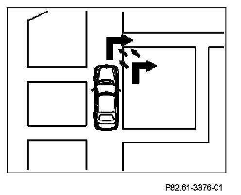 The position of the vehicle is followed continuously on the Navigation processor (DVD) map by the navigation processor of the COMAND operating, display and controller unit (A40/3). In the event of any deviation to the route from the calculated path the positioning coordinates for basic position finding (dead reckoning) are corrected.