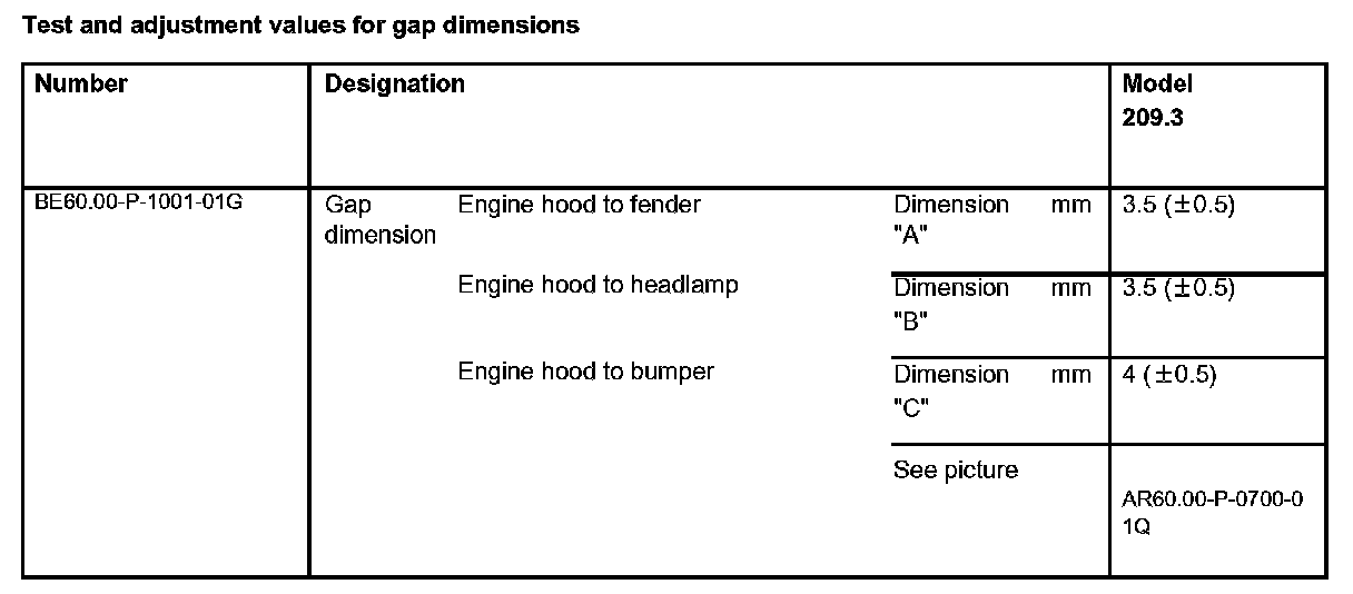 Test And Adjustment Values For Gap Dimensions: