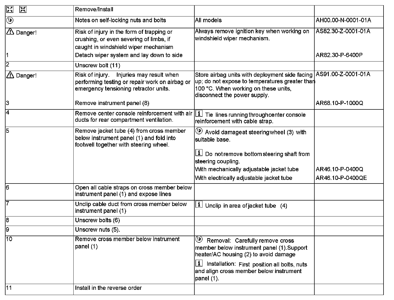 AR68.10-P-1120Q Remove/Install Cross Member Below Instrument Panel