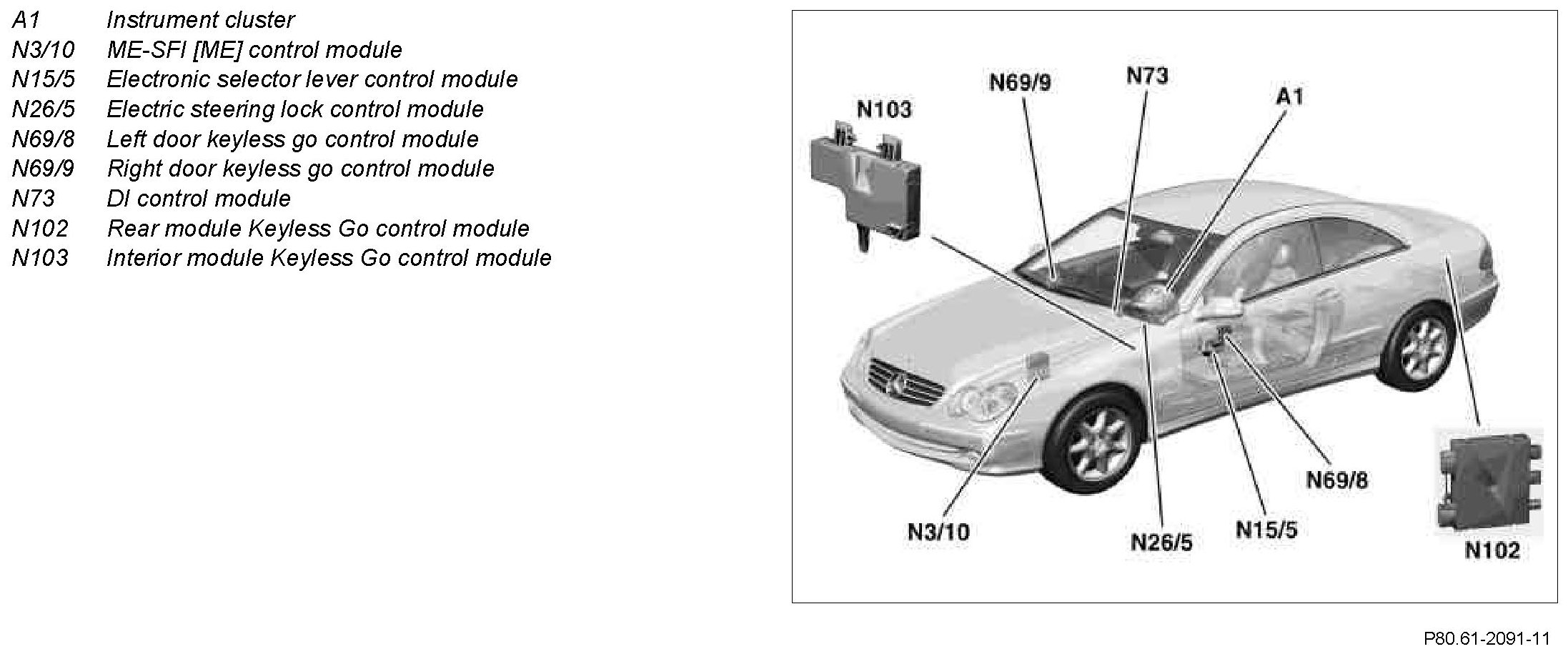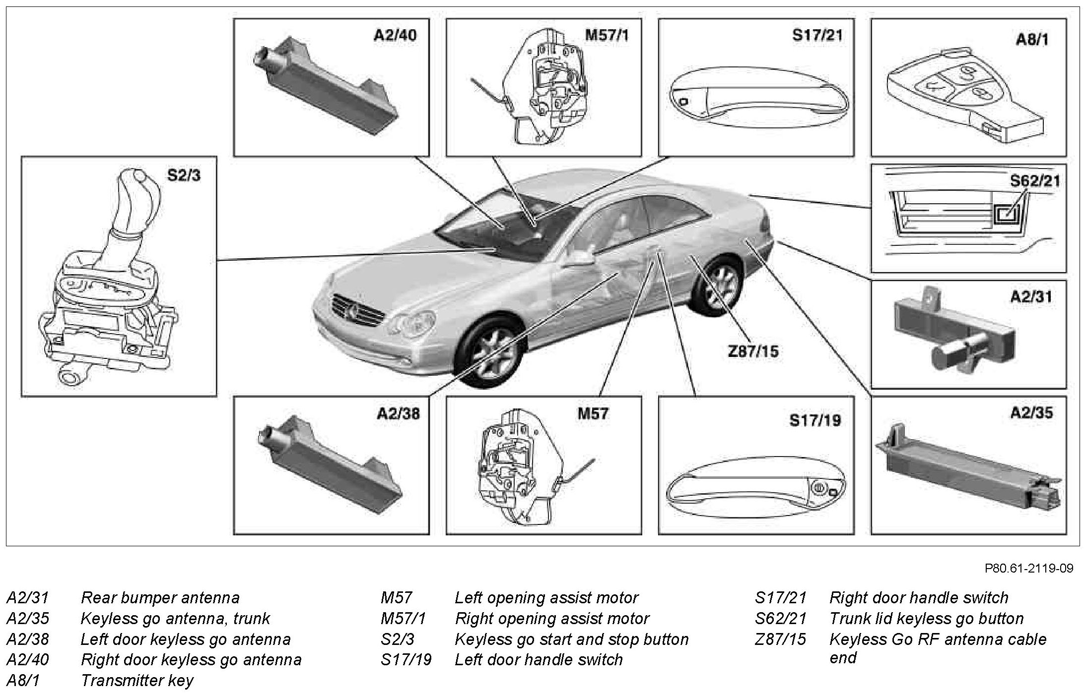 GF80.61-P-0005-01Q Keyless Go, Location of Components